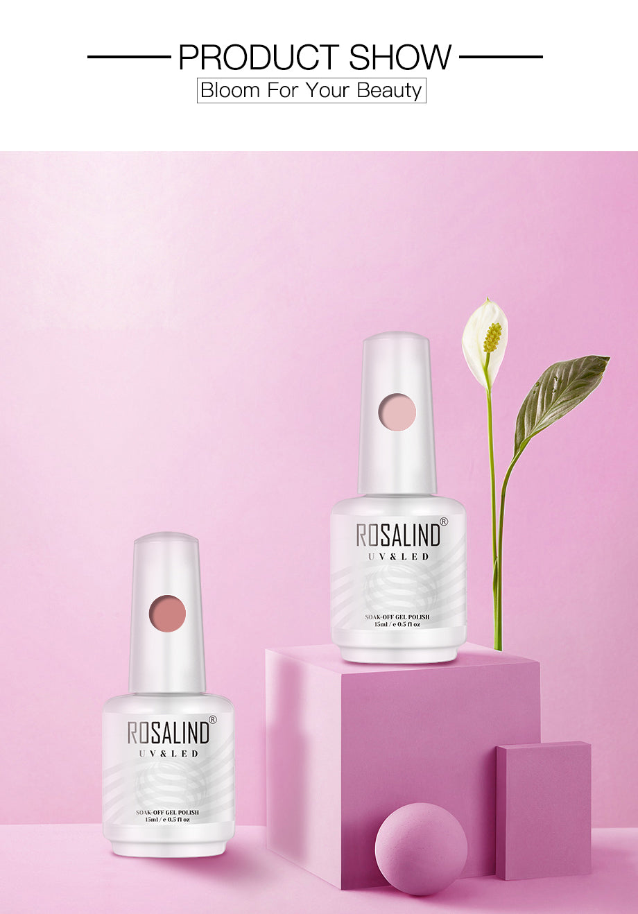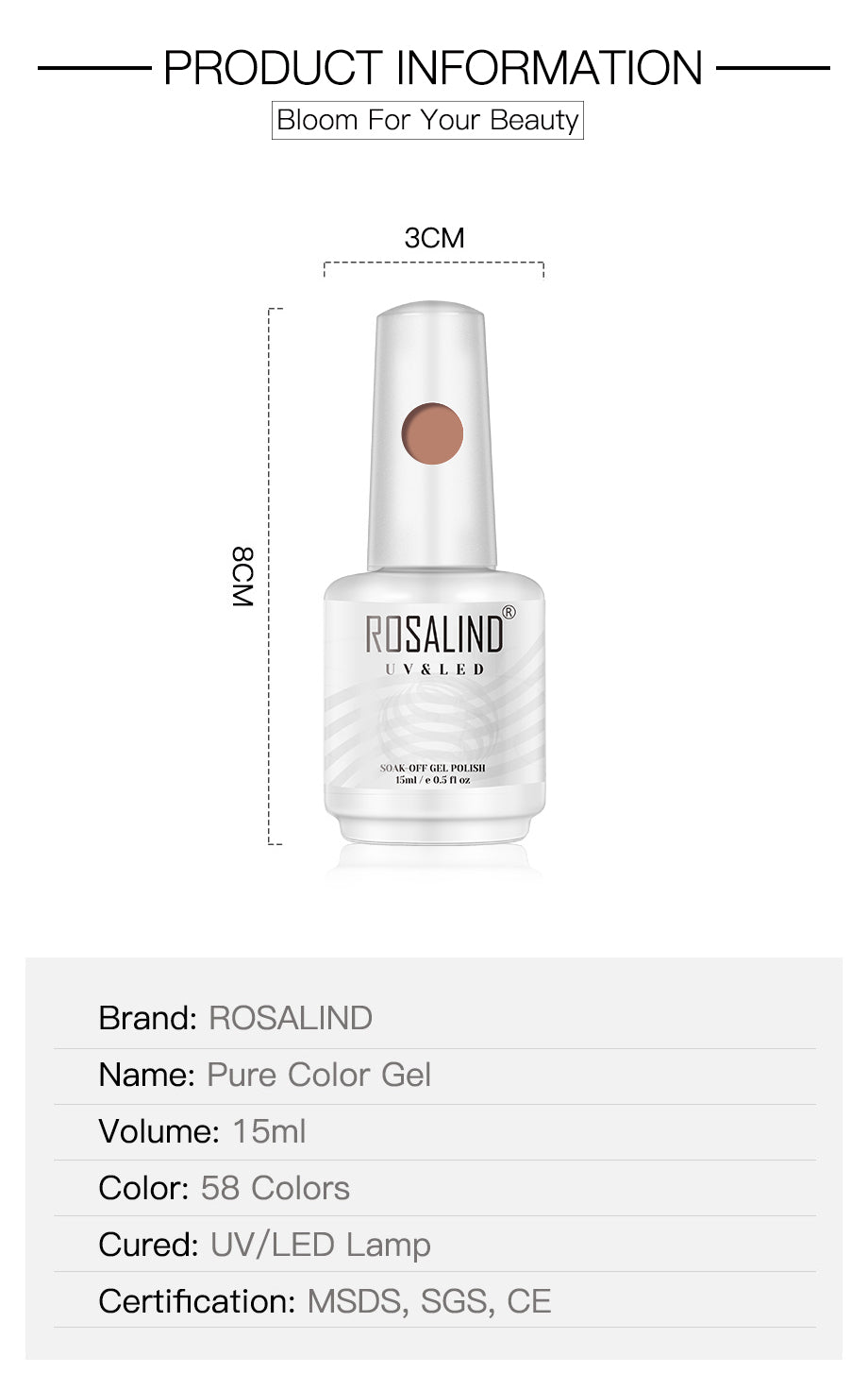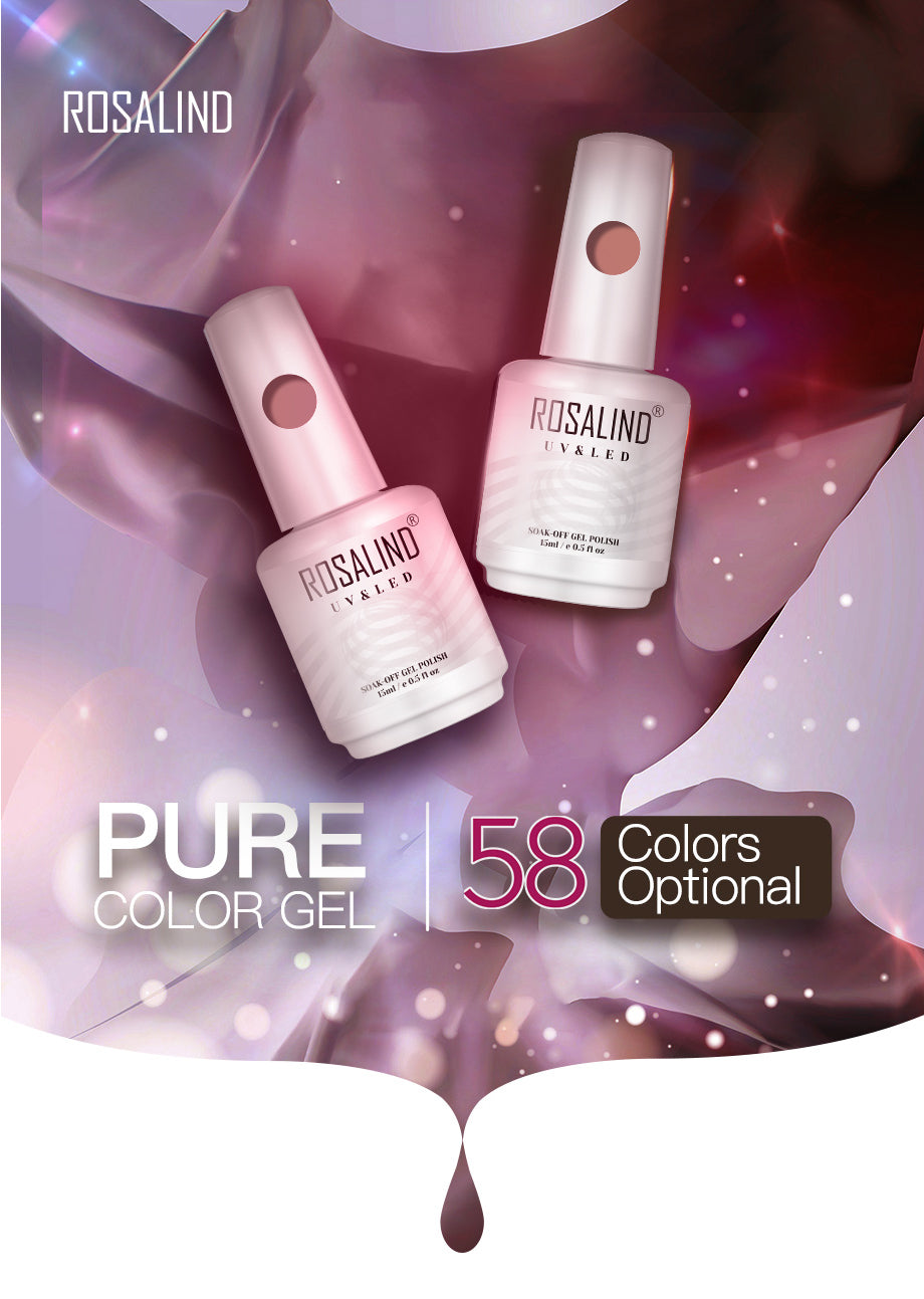 ROSALIND 15ml Soak Off Pure Color Nail Gel Bright For Nail Art Design LED/UV Lamp