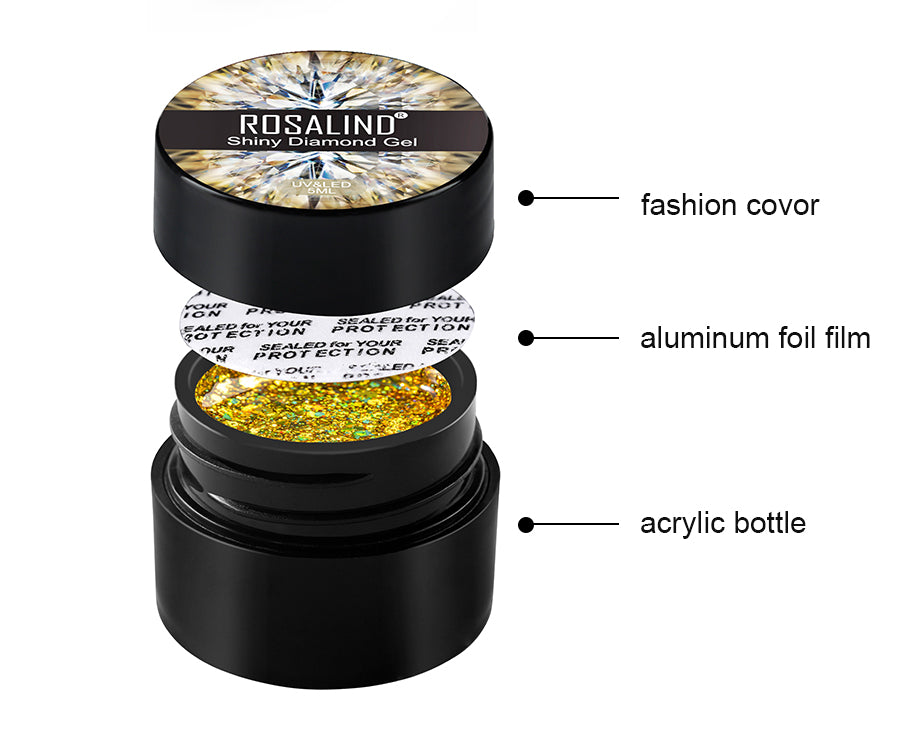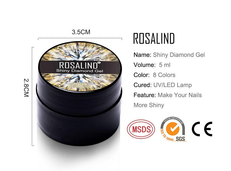 Rosalind brillante diamante nail gel 8 colores 5ML gliter esmalte de uñas
