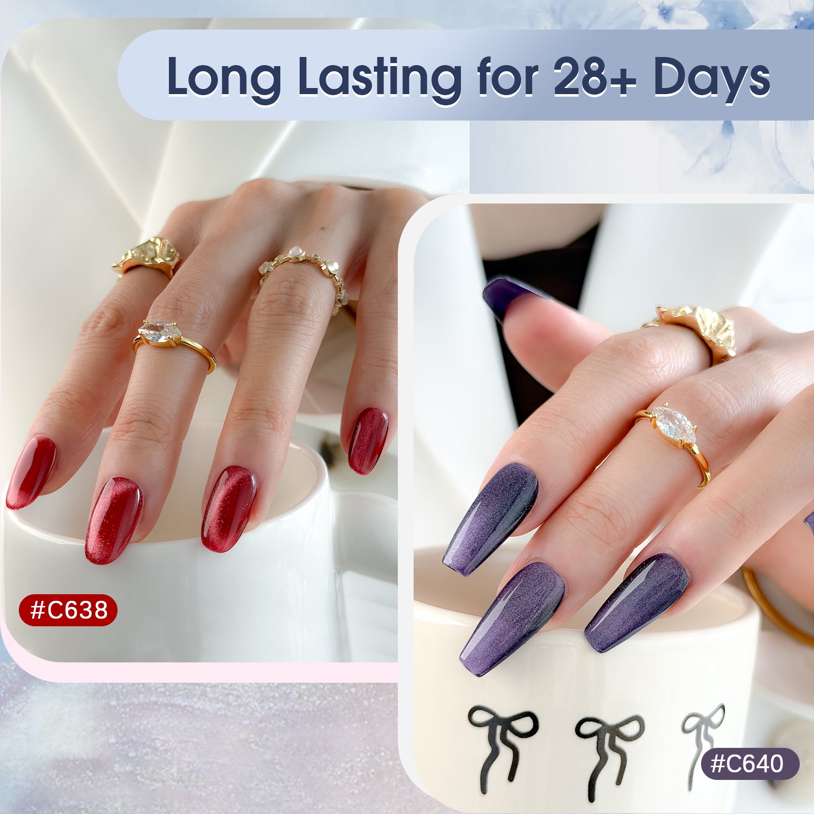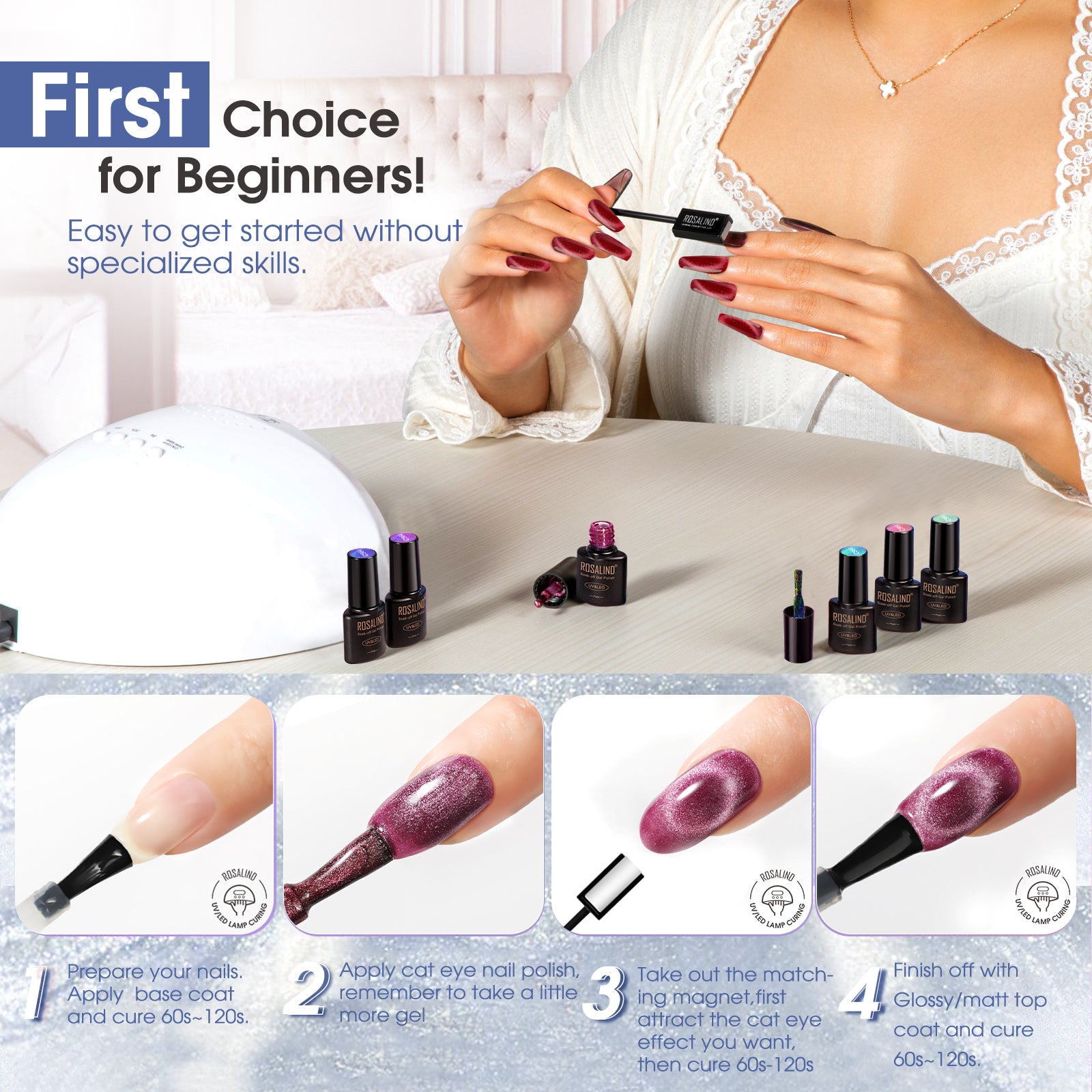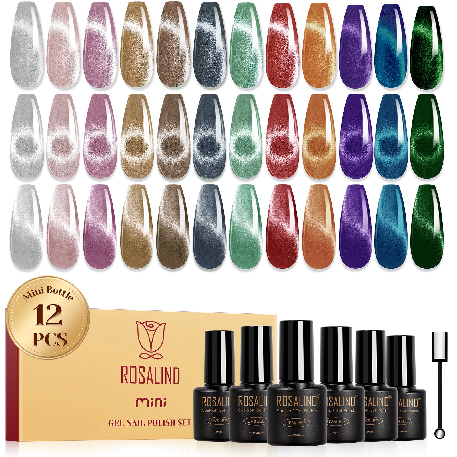 - PREMIUM & LONG-LASTING: Crafted with skin-friendly ingredients and low-odor formula, ROSALIND cat eye gel nail polish set is gentle on natural nails. Achieve a flawless, chip-resistant manicure that lasts 21+ days with proper application. Express yourself with confidence and stunning nails.