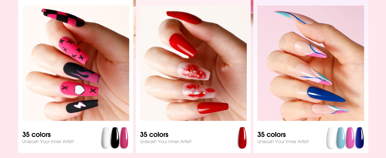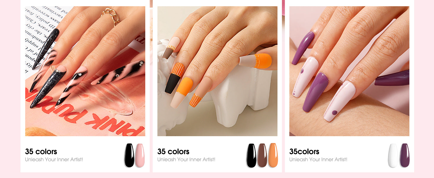 - 【Easy to Apply & Tough】 35 gorgeous colors, 38 non-toxic gel nail polishes with low odor and no harsh ingredients or binders that cause nail damage. The collection's any color gel nail polish set stays long-lasting and perfectly glossy for over 21 days when applied correctly - with a base gel matte glossy top coat nail polish during the complete application process.