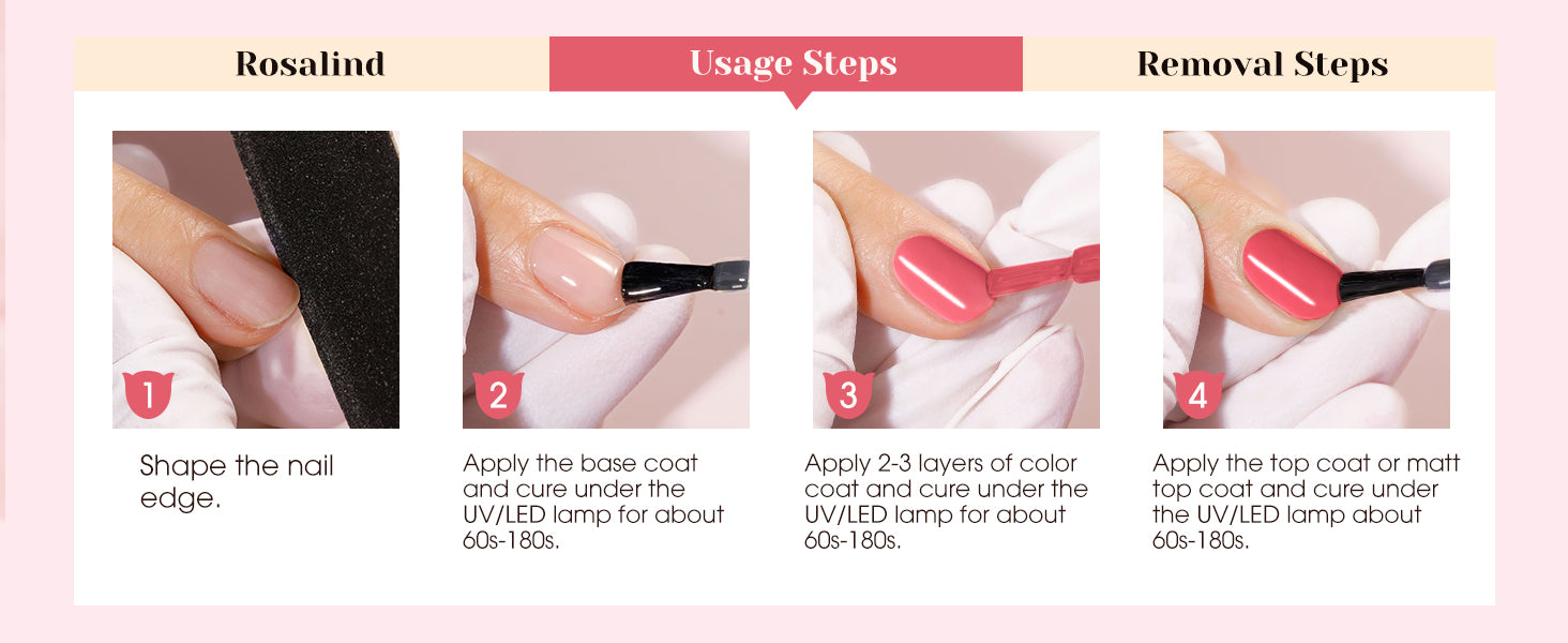 4. Apply the base coat and cure under UV/LED lamp for 60s-180s.