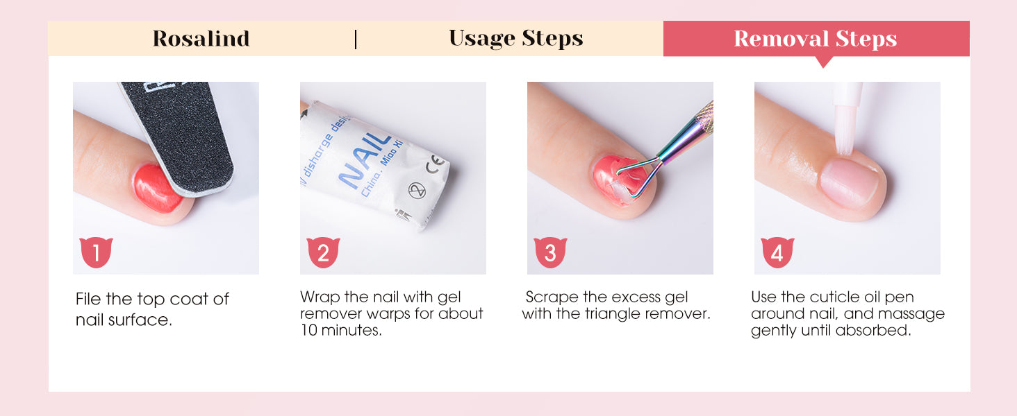 2.Soak off the nail into nail remover wraps for 5-10 mins.